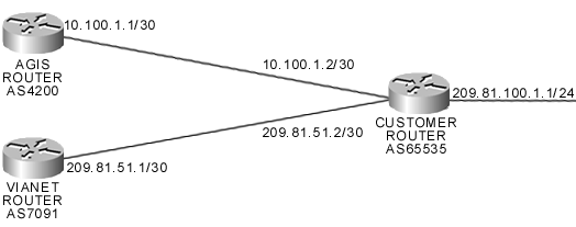 BGP neighbors. The result is that AGIS will see ViaNet routes through you, and ViaNet will see AGIS